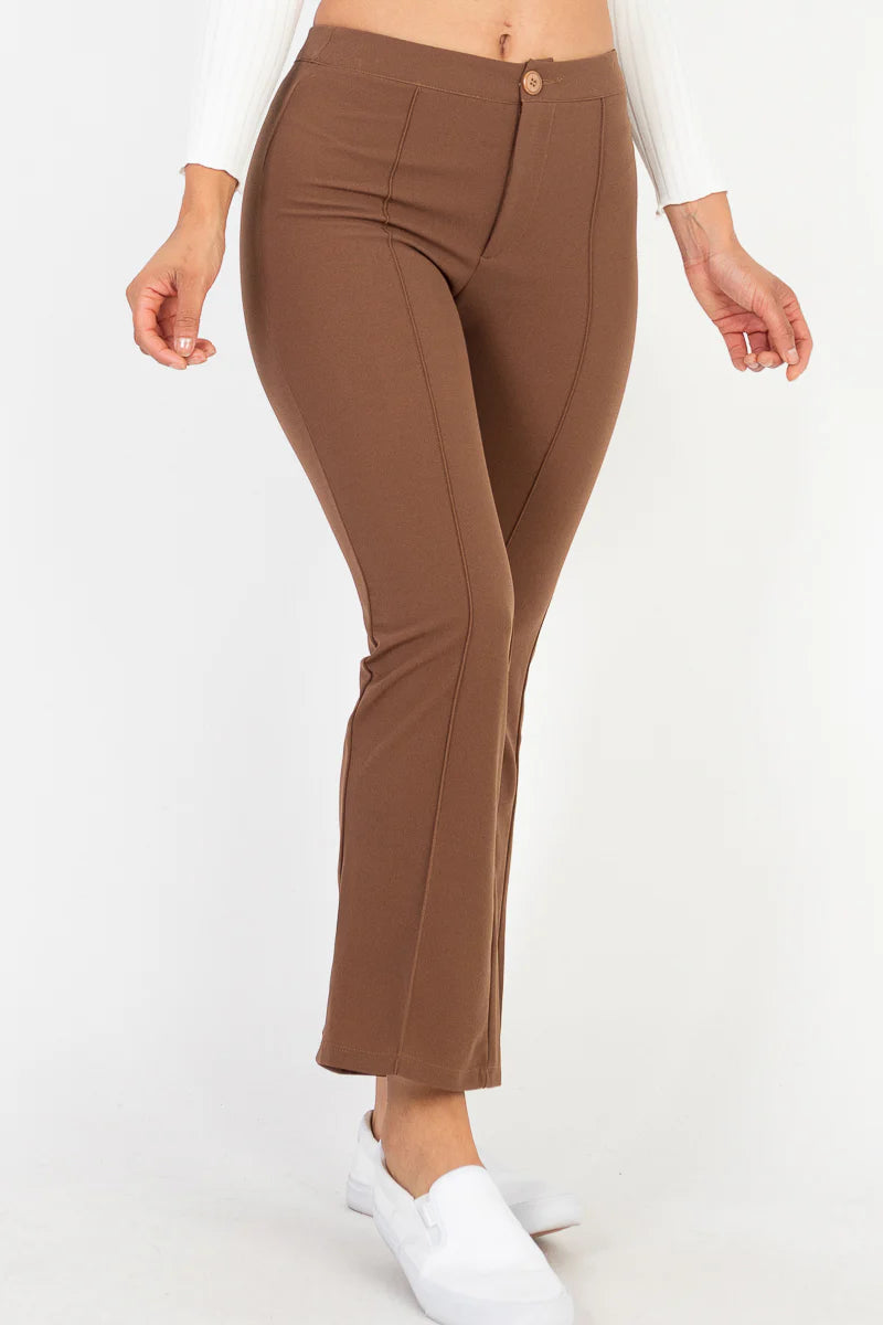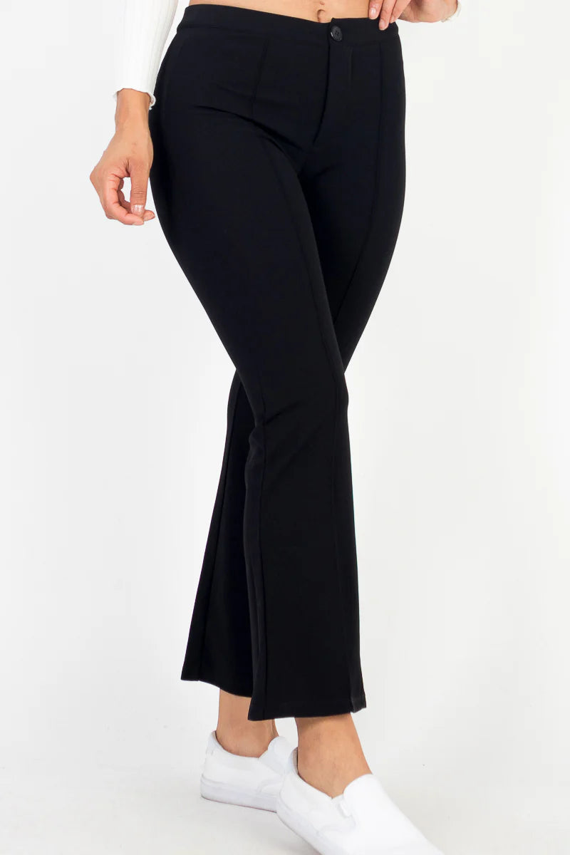 Step into comfort and style with these high-waist knit flare pants — the perfect blend of effortless elegance and everyday ease. Made from a soft, lightweight stretch crepe, they move with you while keeping their chic shape. The elasticized waistband ensures all-day comfort, while the gently flared leg adds a flattering, elongating touch. Whether you’re strolling through the city, enjoying a relaxed weekend, or heading out for a casual gathering, these pants are your go-to for looking polished without trying too hard.